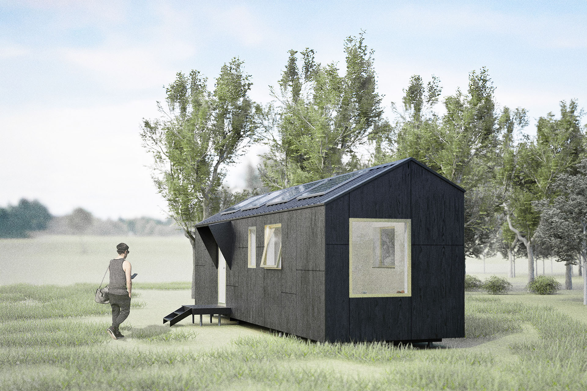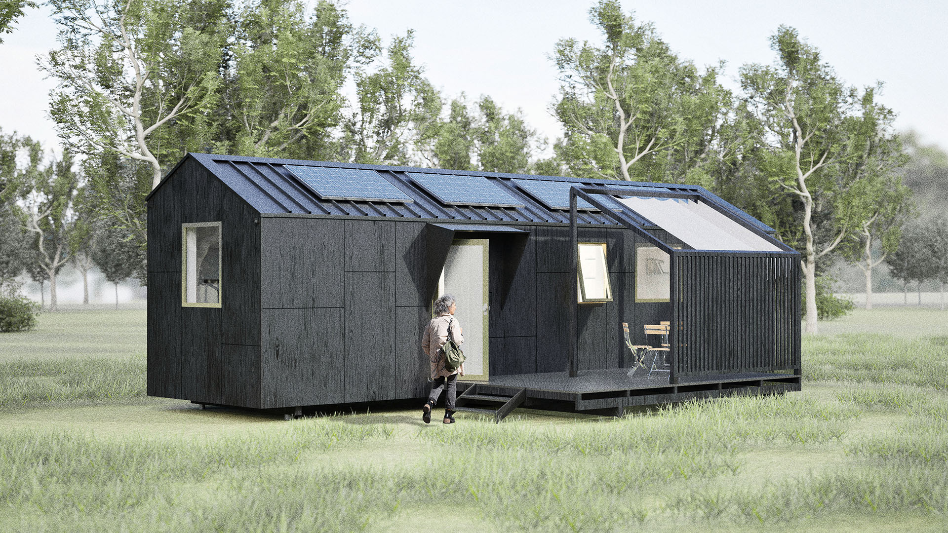Das ab Sommer 2025 verfügbare Gebäude ist modular konzipiert und lässt sich durch verschiedene Varianten auf bis zu 43 m² Nettogrundfläche erweitern, um Nutzungskonzepte wie Terrasse, Arbeitsräume oder Wohnraum für Familien oder Gruppen abzubilden.